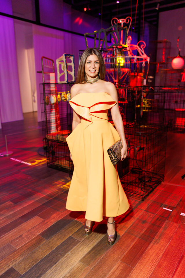 Throughout the night, galleries pulsated with artist activations. More than 800 guests joined the late-night Dream Party in the glorious Beaux-Arts environs of Samsung Hall, where DJ Umami and dance performance troupes enlivened the crowd. Some moves even unfurled atop a work by Rave artist Joe Namy, whose 100-foot interactive copper dance floor records the imprints of dancing visitors — of which the first footwork was applied by Daniel Lurie and Becca Prowda.