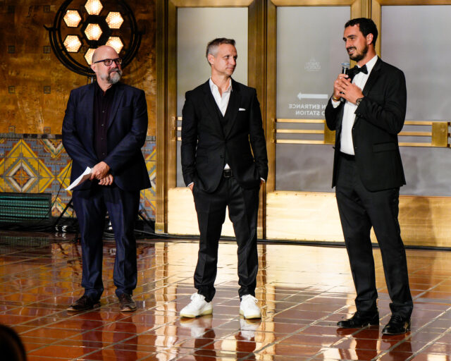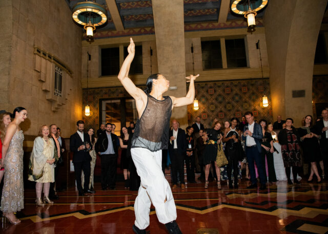 Millepied and the dance company gathered supporters and honorary chair Adrien Frier, consul general of France in Los Angeles, for cocktails and performances in the station’s Fred Harvey restaurant and bar designed in Spanish Revival style by architect Mary Elizabeth Jane Colter. The prelude program, Le Rendez-Vous, concluded with Immded Immgewd, a piece centered around a drum kit, choreographed and performed by Jobel Medina and Elliott Sellers. The gala dinner, with a menu by chef Curtis Stone and held in the cavernous main ticketing concourse, included excerpts of Millepied’s On the Other Side and Hearts & Arrows as well as In Her Name choreographed and performed by Mythili Prakash. The evening benefitted the company’s Launch: LA residency program supporting emerging dance makers, and the organization’s Summer Dance Intensive held in partnership with Everybody Dance LA! Frier joked that he thought, when summoned to a train station, he would get to travel to Bakersfield or San Diego. “And yet we stay here,” he said, noting he had been metaphorically transported by dance.