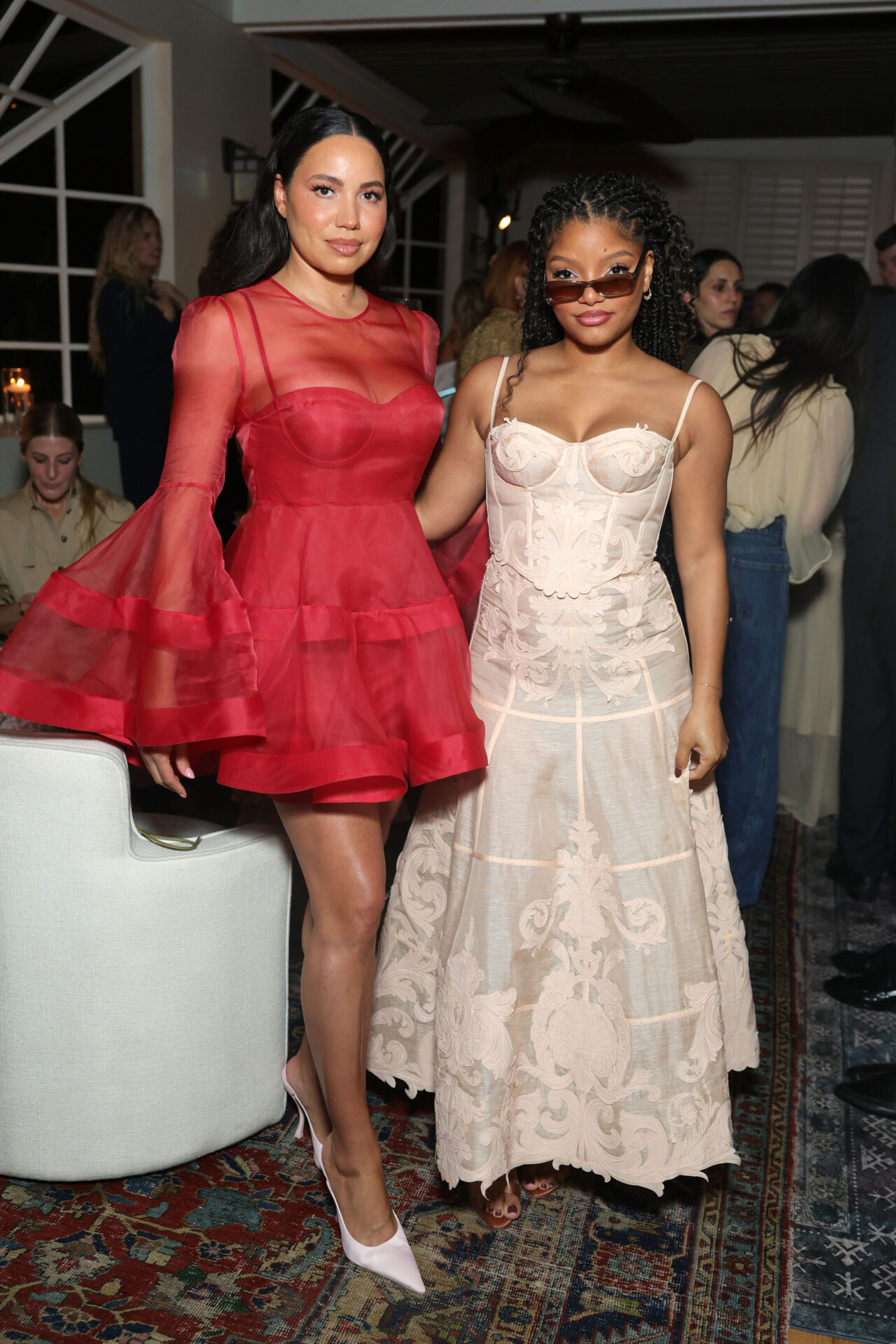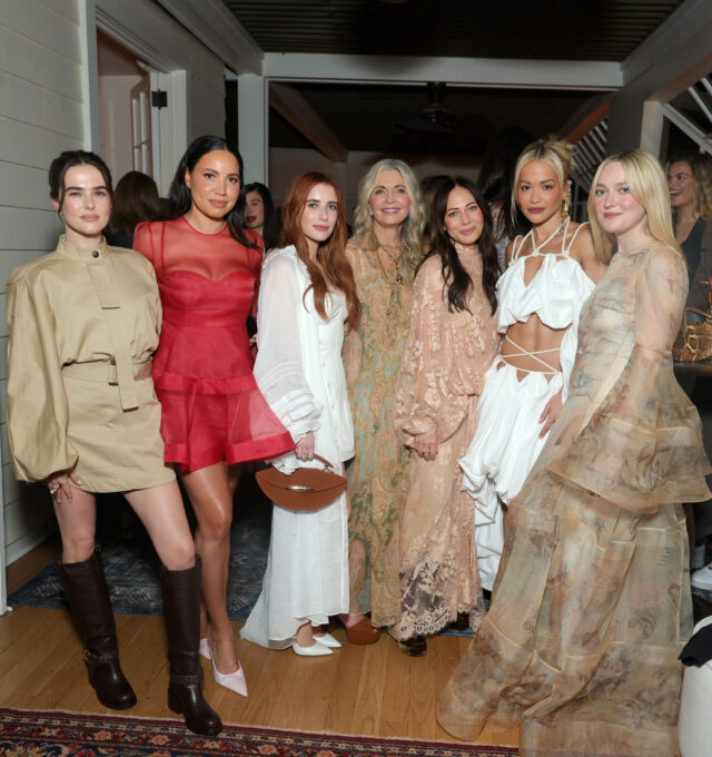 Abby Champion, who dressed in a design created by Nicky during the weekend of her wedding to Patrick Schwarzenegger, donned another of her diaphanous looks for the party. Rita Ora, Dakota Fanning, Zoey Deutch, Emma Roberts, Jurnee Smollett, Halle Bailey, Chloe East, Delany Rowe, Larsen Thompson, Anna Diop, Isabela Merced, Hilary Rhoda, and Hailey Clauson, also in Zimmermann, joined the festivities, making their way to the Penthouse where DJ Kitty Cash spun as dessert made the rounds. Art Production Fund’s Casey Fremont was also on hand, as were fellow Aussies Joel Egerton and Bella Heathcote, toasting the sisters and their elegant line as the rain fell all around them.