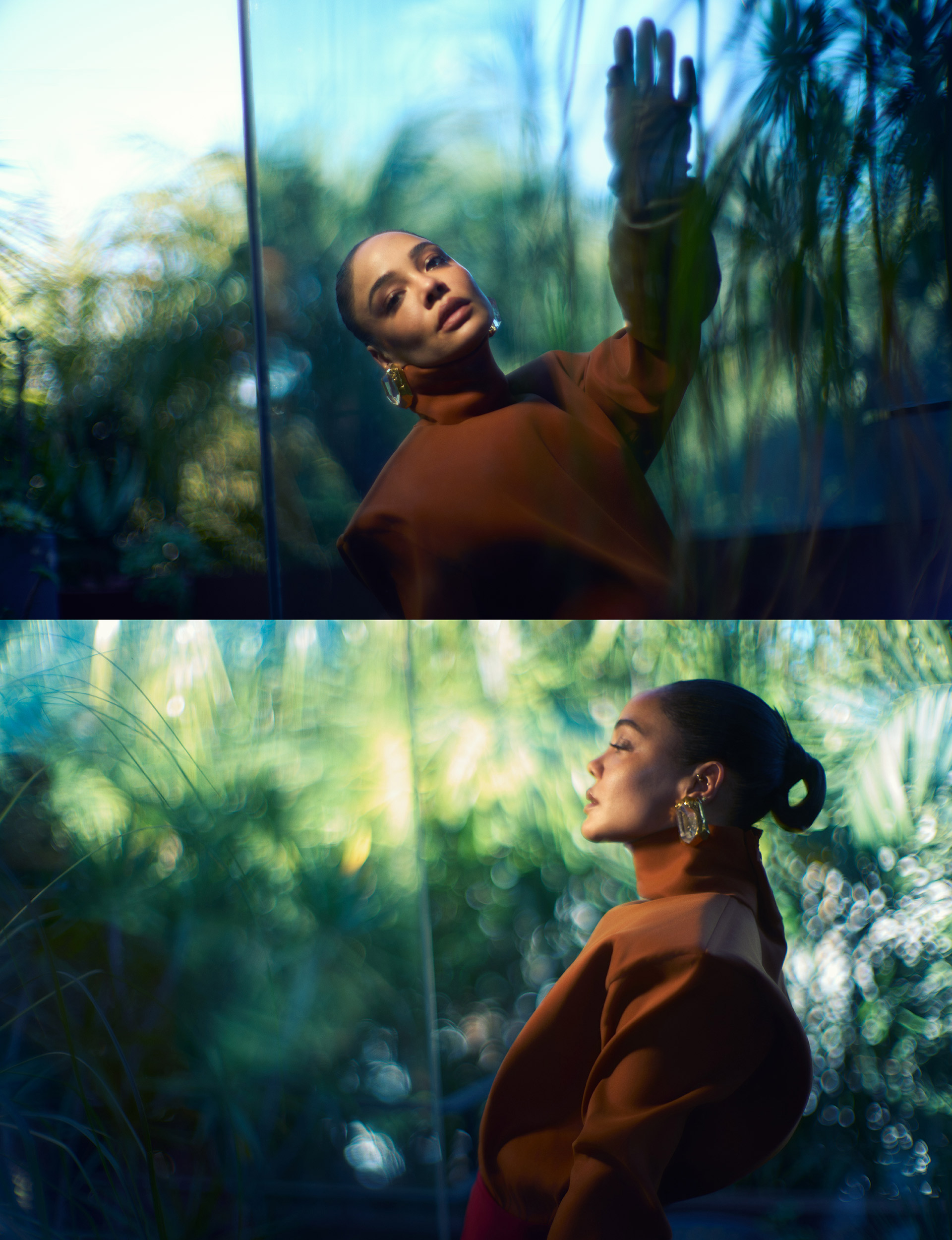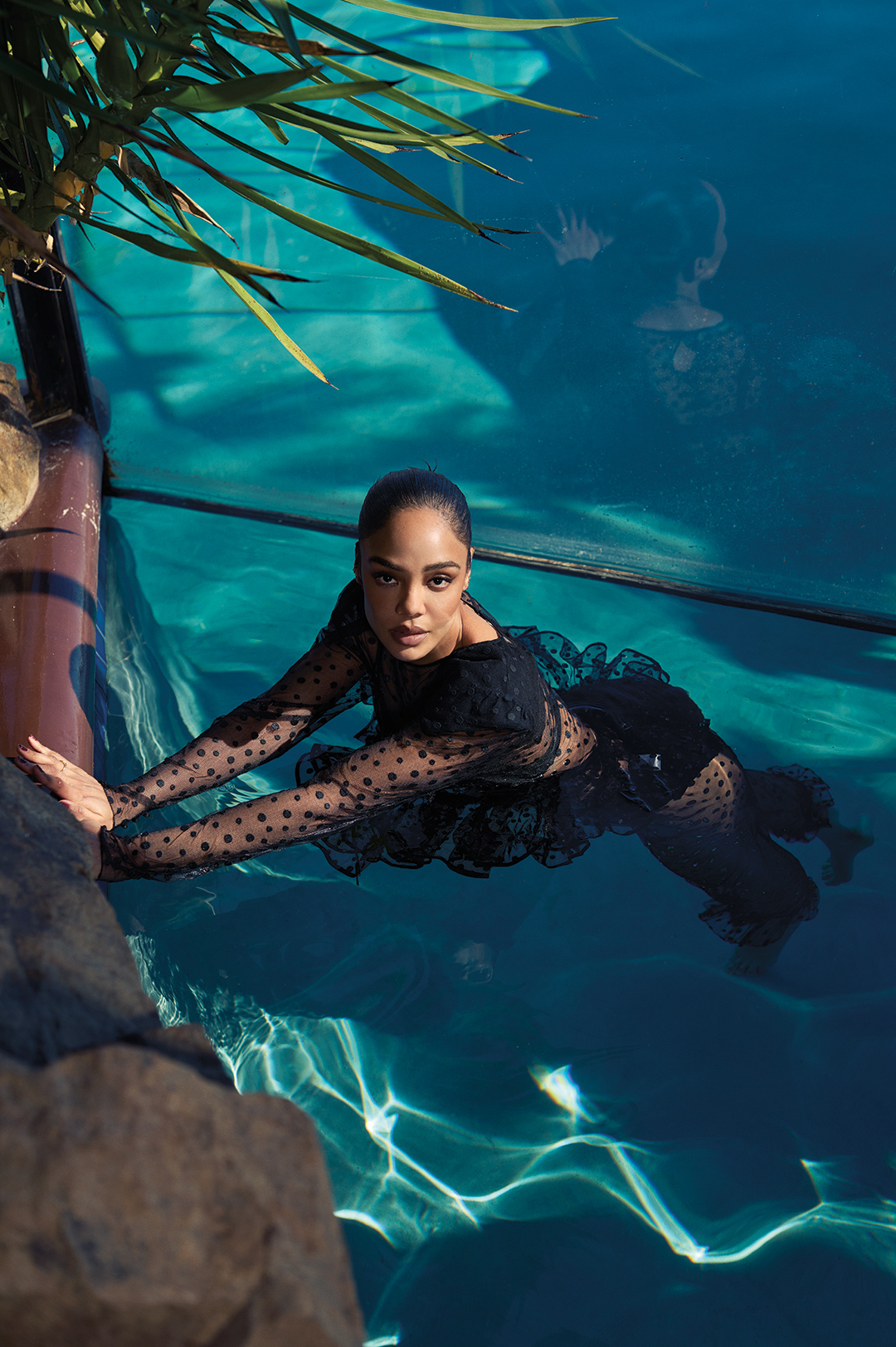 A third-generation Californian, Thompson was born mixed race and attended Santa Monica High School, living part time with her mother, a painter and ceramist, and her father, a musician who started the musical collective Chocolate Genius Inc. “I love California,” she says. “It’s so rich culturally. My mom is half Mexican. My grandfather came from Mexico and eventually settled in California. I don’t eat Mexican food anywhere else in the world.” She grew up going to see Thanksgiving movies at theaters like the Grauman’s Chinese, where she would later appear on the red carpet at the Thor: Ragnarok premiere. Her first Hollywood apartment was a studio off Hollywood Boulevard.