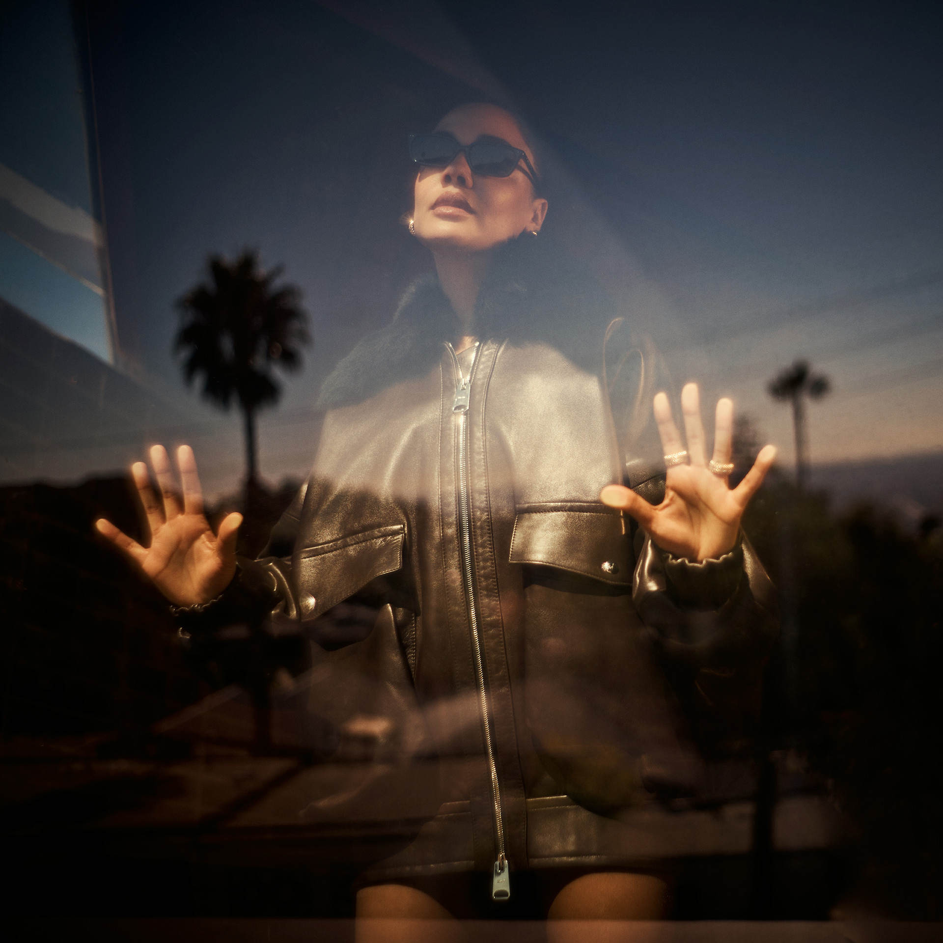 KHAITE jacket, price upon request. JIMMY CHOO sunglasses, $285. CARTIER earrings, $24,100, and rings, from $13,900.