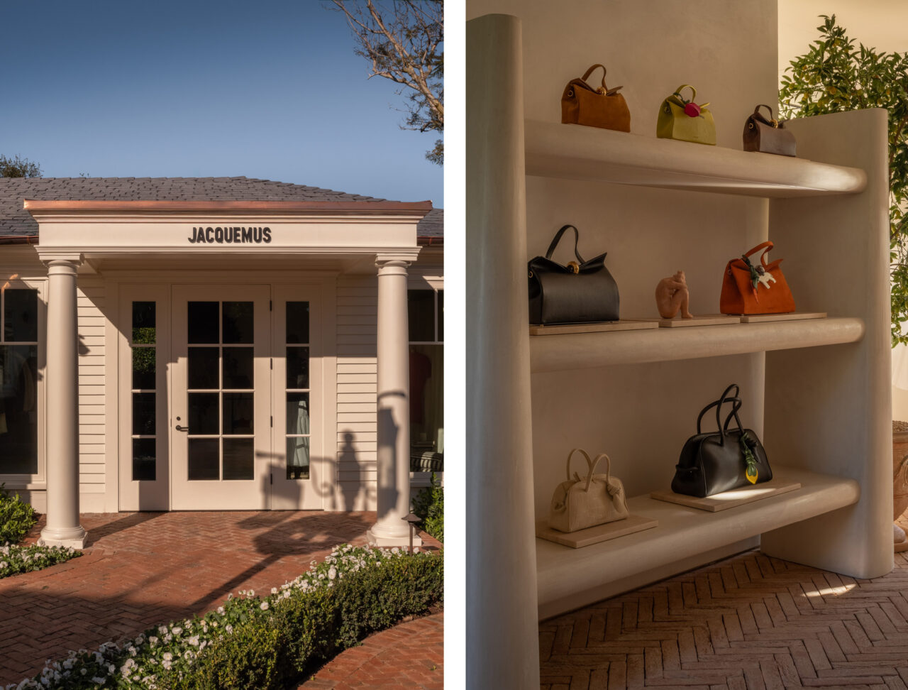 Simon Porte Jacquemus, born and raised in the South of France, is opening a sun-drenched seasonal boutique for his eponymous label, JACQUEMUS, in coastal Montecito. Drawing from a palette steeped in the golden tones of the Mediterranean coast, his second California shop stocks bags including the new Valérie top-handle, Rond Carré clutches, Bambola carryalls, and Bisou shoulder bags, plus ready-to-wear and surrealist shoes ideal for an evening out or trainers for strolling along Santa Barbara’s beachside cliffs. A collection of enveloping wool scarves for the morning marine layer is here, alongside airy fitting rooms with billowing drapes evoking poolside cabanas paired with herringbone-patterned terra-cotta brick floors. Provence stripes appear on chairs and patio furniture, and crashing waves in the distance are transportive. Neighboring shops from Chanel to Bottega Veneta, Loro Piana, Brunello Cucinelli, and more round out the new spot’s oceanfront allure. 1759 S. Jameson Ln., Montecito, Rosewood Miramar Beach, 805-961-2360; jacquemus.com. E.V.